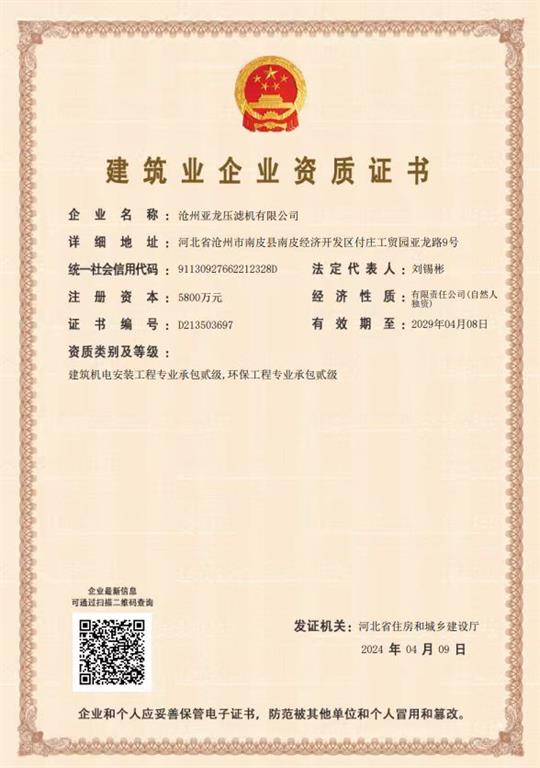 該資質承攬內容: 建筑機電安裝工程承包貳級,環(huán)保工程承包貳級。